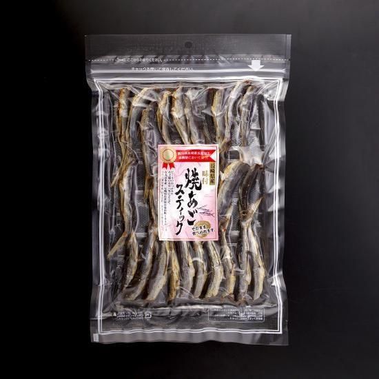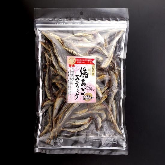 おつまみの中で一番人気の「焼あごスティック」は、味を付けて焼いてあるので、袋から出したらそのまま食べることができ、お酒のおつまみにぴったりのひと品。「あご」は飛び魚のことで、長崎の秋の味覚として古くから愛されている特産品です。
